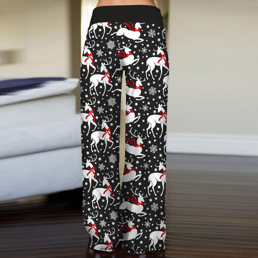 Christmas Cartoon Elk Print Flocked Long Sleeve Dress
