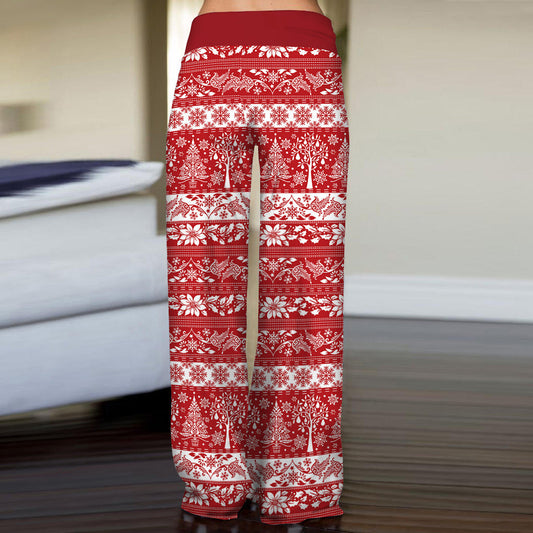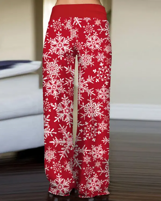 Christmas Drawstring Snowflake Print Wide Leg Pants