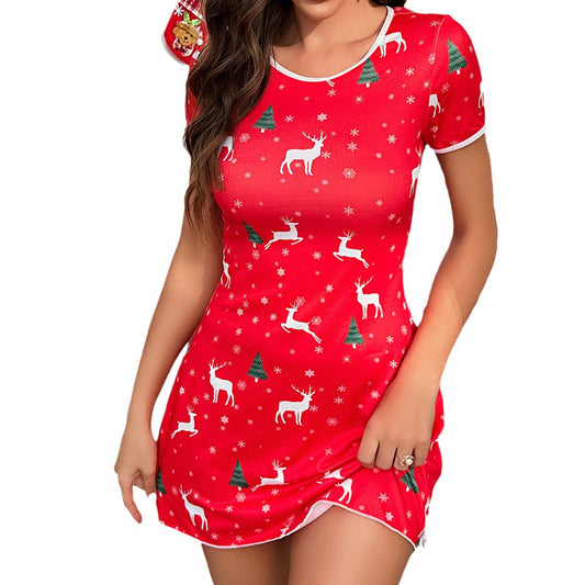 Christmas Sexy One-piece Lingerie Milk Silk Print Nightgown