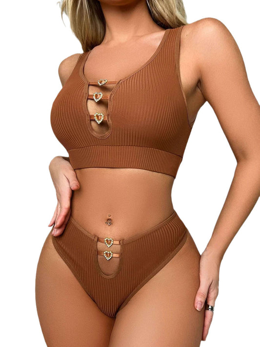 Solid Color Ring Bandage Cut-out Sleeveless Bra
