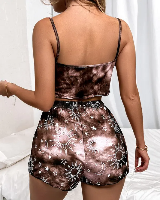 Tie Dye Sun Moon Star Print Bow Decor Cami Set
