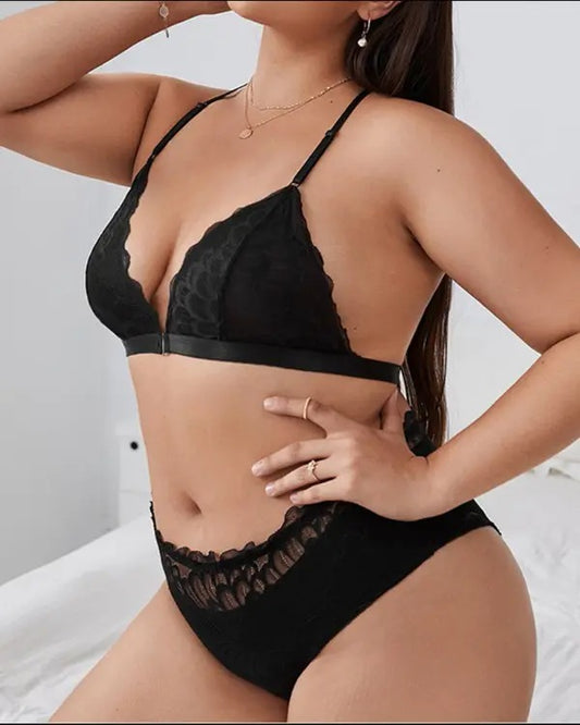 Plus Size Crochet Lace Criss Cross Backless Lingerie Set With Leg Rings