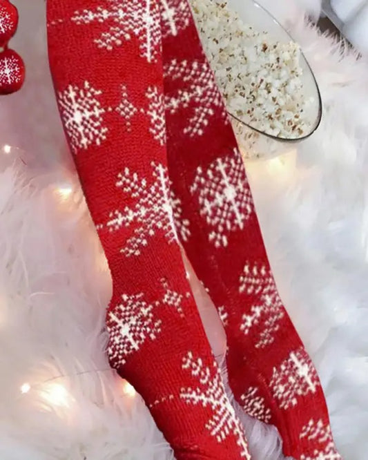 Christmas Snowflake Pom Pom Knee Length Socks