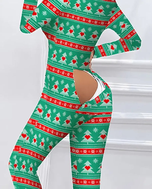 Christmas Functional Buttoned Flap Adults Pajamas