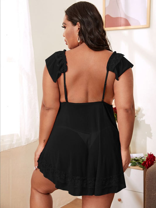 Plus Size Sexy Lace See-Through Hot Temptation Sexy Nightgown Suit